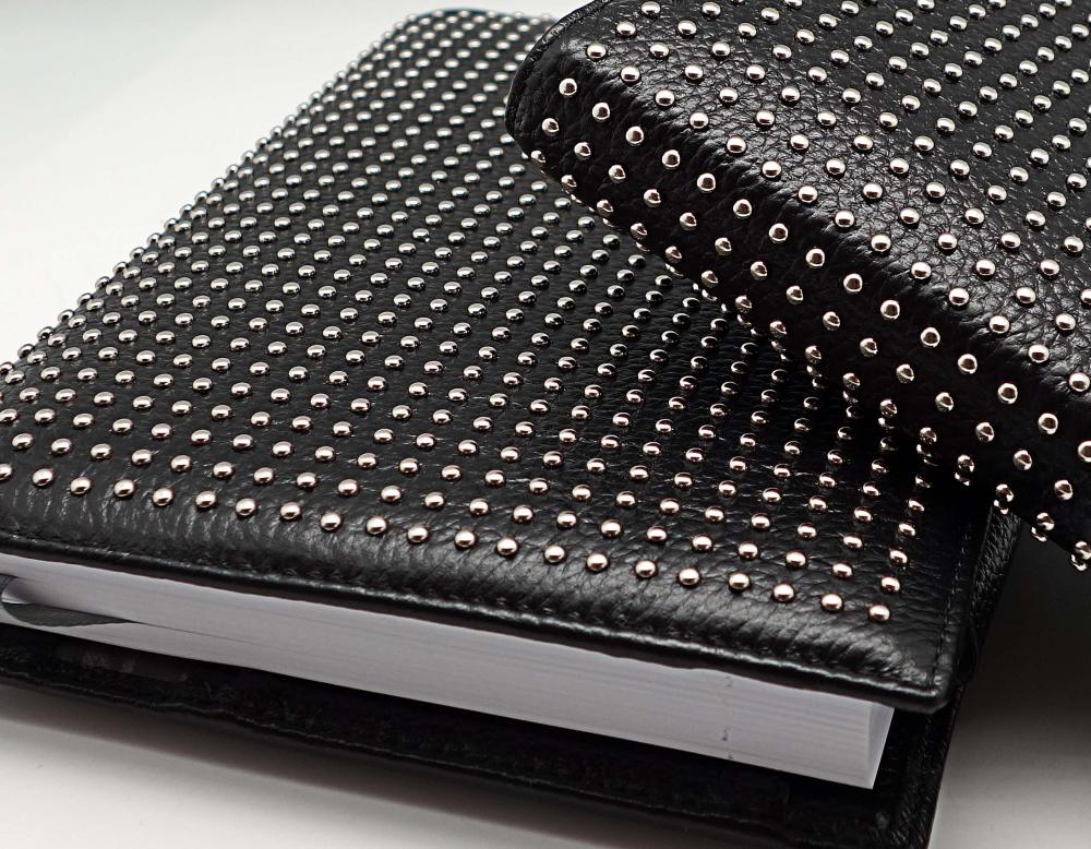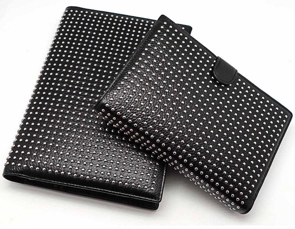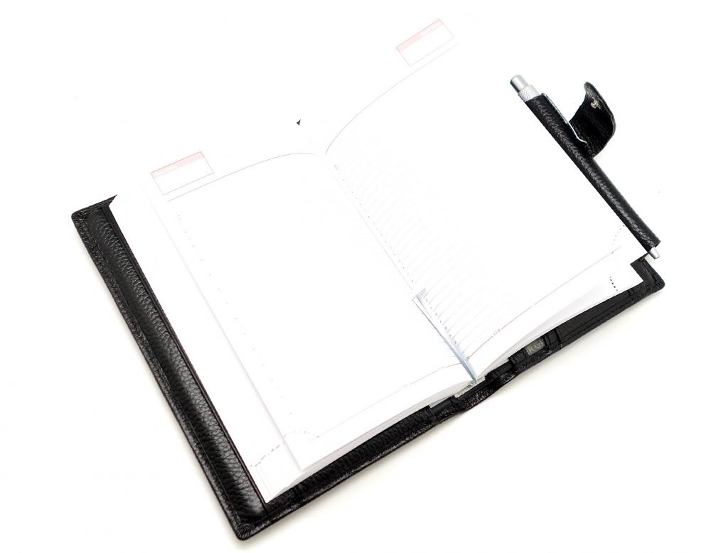 И ещё: закрывается перекидным хлястиком на кнопку. Фурнитура - белый металл. Авторучка в комплекте.