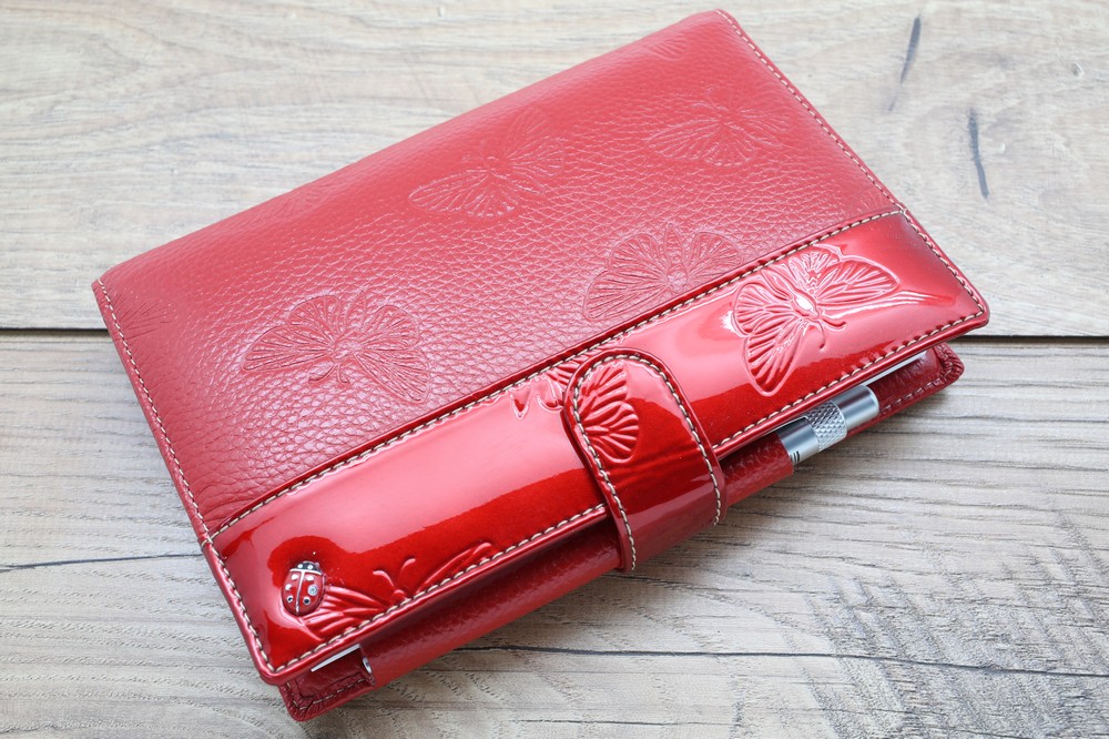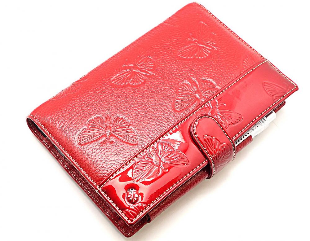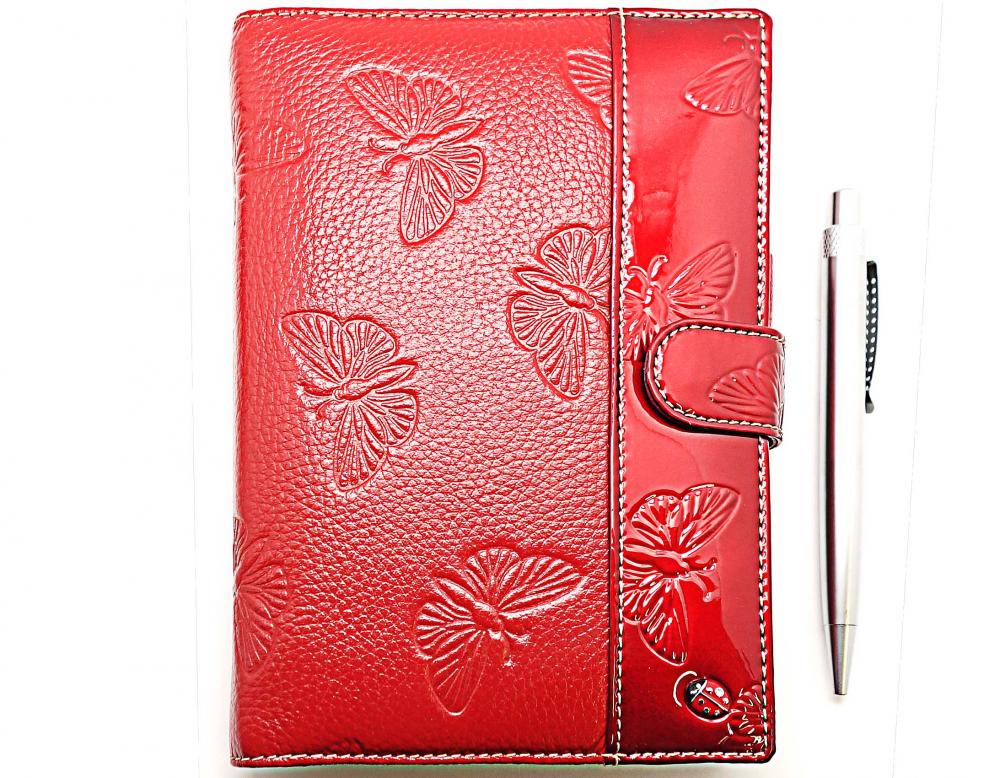 И ещё: закрывается перекидным хлястиком на кнопку. Фурнитура - белый металл. Авторучка в комплекте.