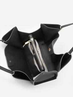 Внутри: один вместительный отдел. По центру отдела расположено отделение на молнии и два открытых кармашка для мобильного и мелких предметов.