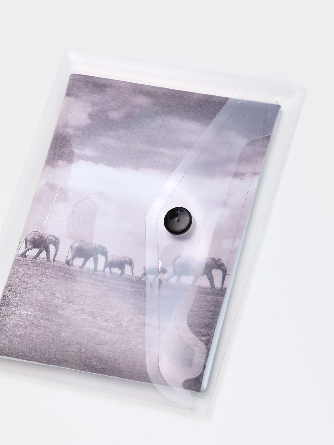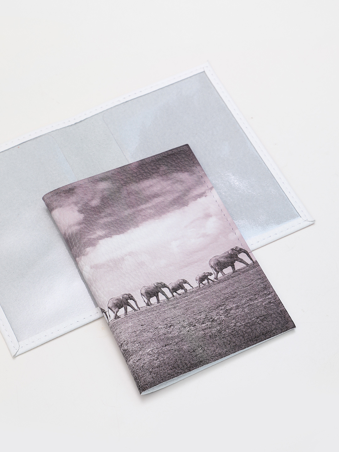 Внутри: по бокам -  прозрачные захваты для паспорта.