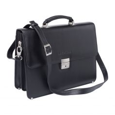И ещё: сумка закрывается перекидным клапаном на фурнитуру, носится в руке, хорошо держит форму. Вмещает в себя документы в формате А4 и ноутбук до 13" дюймов. Дополнительно прилагается длинный регулируемый кожаный ремень на карабинах на плечо. Фурнитура - белый металл.