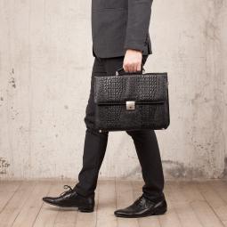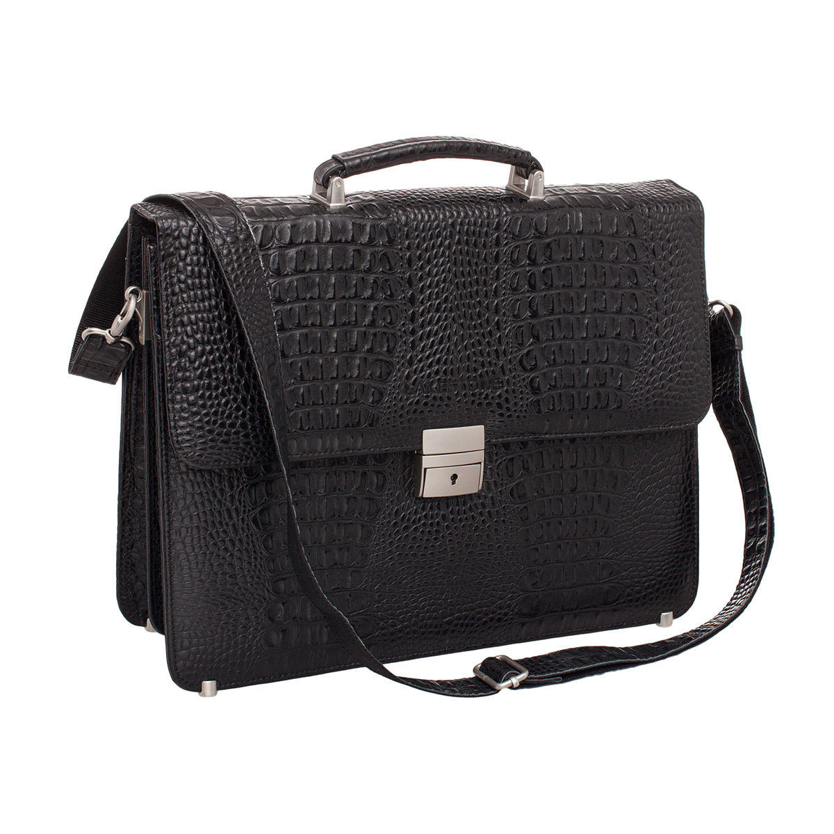 И ещё: портфель закрывается перекидным клапаном на замочек, носится в руке. Хорошо держит форму. Вмещает в себя документы в формате А4небольшой ноутбук до 13" дюймов. На дне портфеля имеются металлические ножки. Дополнительно прилагается длинный регулируемый кожаный ремень на карабинах на или через плечо. Фурнитура - белый металл.