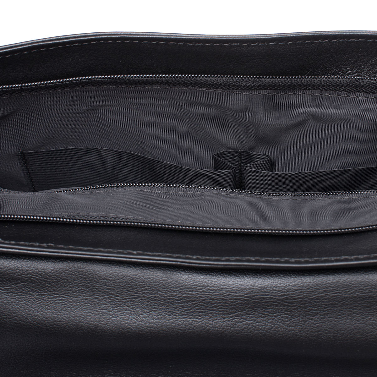 И ещё: сумка закрывается на молнию и перекидным клапаном на фурнитуру, носится в руке, хорошо держит форму. Вмещает в себя документы в формате А4 и ноутбук до 14" дюймовПо периметру сумки молния для увеличения внутреннего объёма. Дополнительно прилагается длинный регулируемый кожаный ремень на карабинах на плечо. Фурнитура - белый металл.