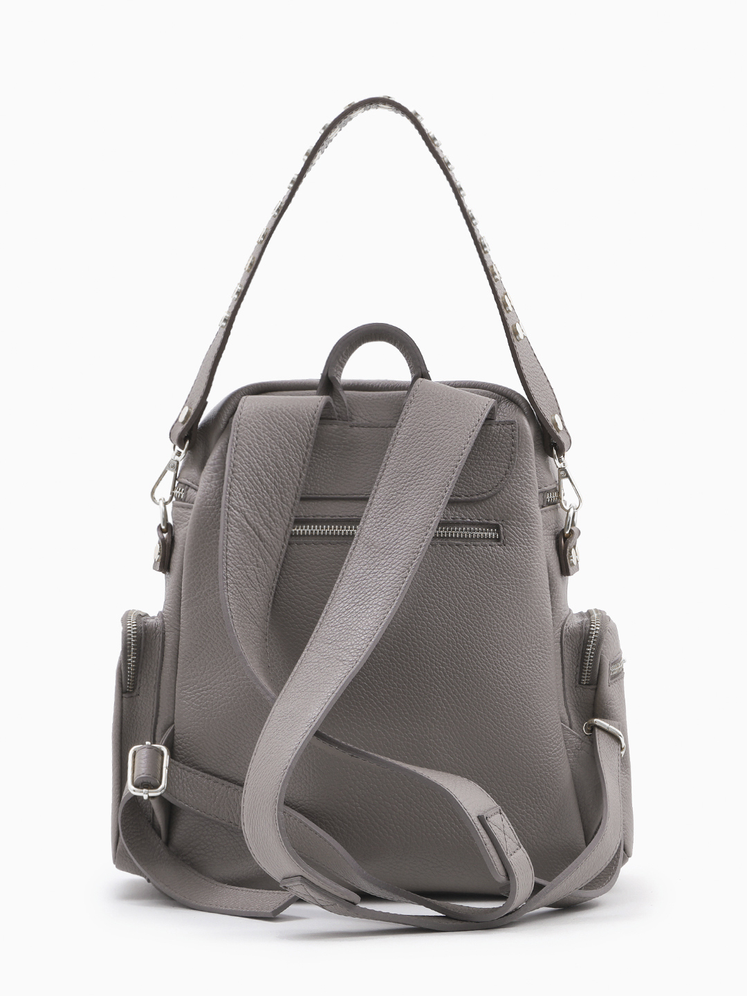 И ещё: рюкзак закрывается на молнию, носится в руке или надевается на плечи. Кожа мягкая. Длинные регулируемые кожаные ремешки на плечи. Фурнитура - серебристый металл.