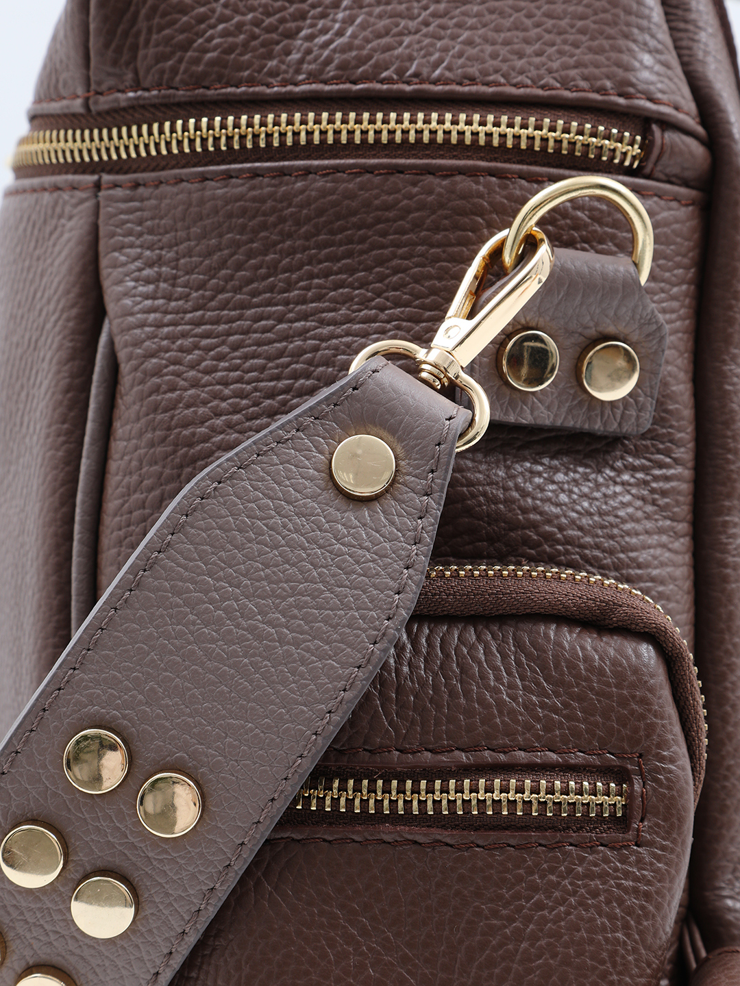 И ещё: рюкзак закрывается на молнию, носится в руке или надевается на плечи. Кожа мягкая. Длинные регулируемые кожаные ремешки на плечи. Фурнитура - золотистый металл.