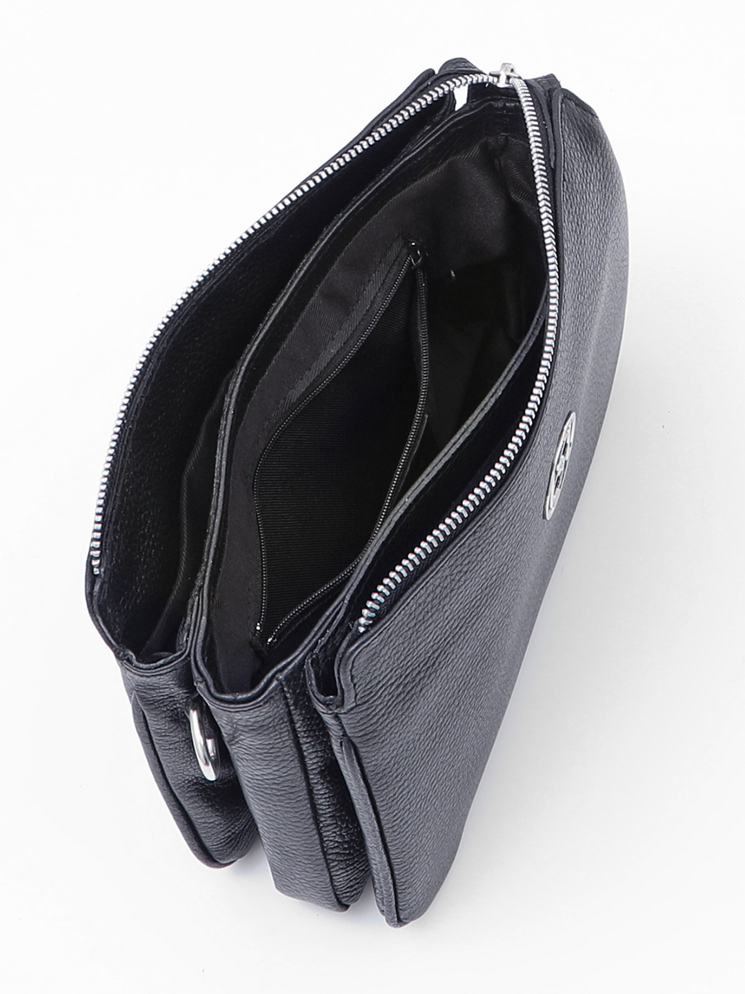 Внутри: три отдела. На задней стенке центрального отдела расположен карман на молнии.