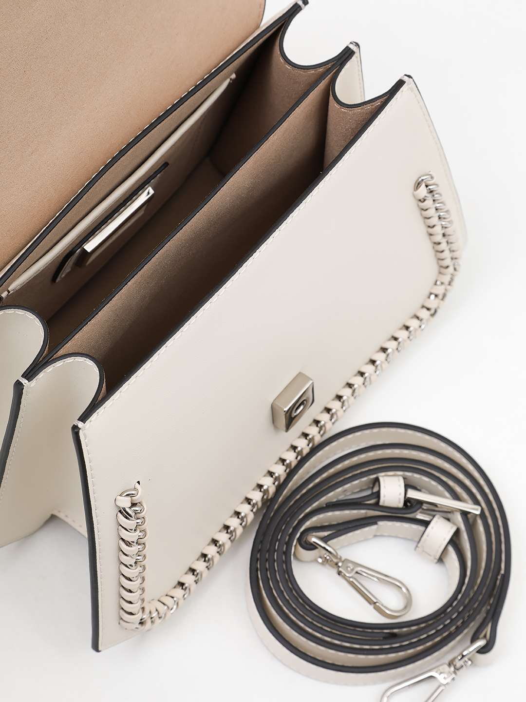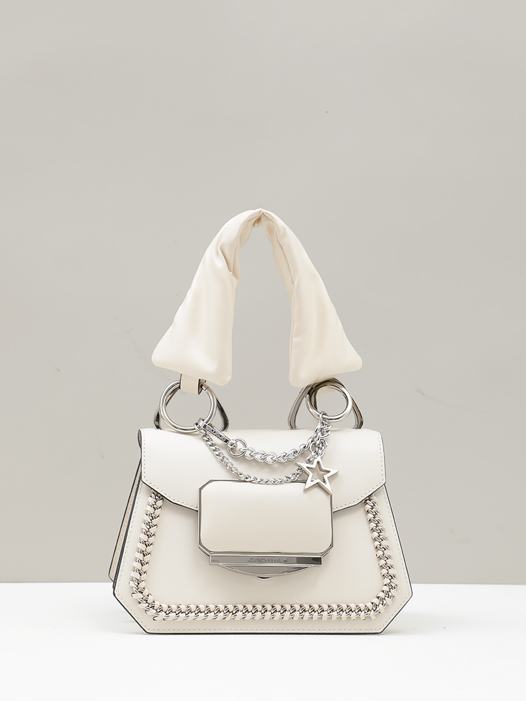 И ещё: сумочка без текстильной подкладки, закрывается перекидным клапаном на красивую фурнитуру, носится в руке. Отлично держит форму. Дополнительно прилагается длинный регулируемый кожаный ремешок на карабинах на плечо, максимальная длина - 127 см. Фурнитура - серебристый металл.