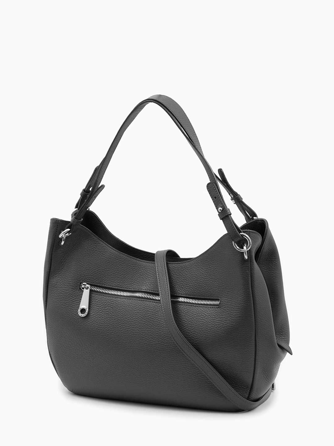 И ещё: сумка носится на плече, на сгибе руки и в рукеПрилагается длинный ремень на плечо, максимальная длина - 117 см (регулируется). Фурнитура - серебристый металл.