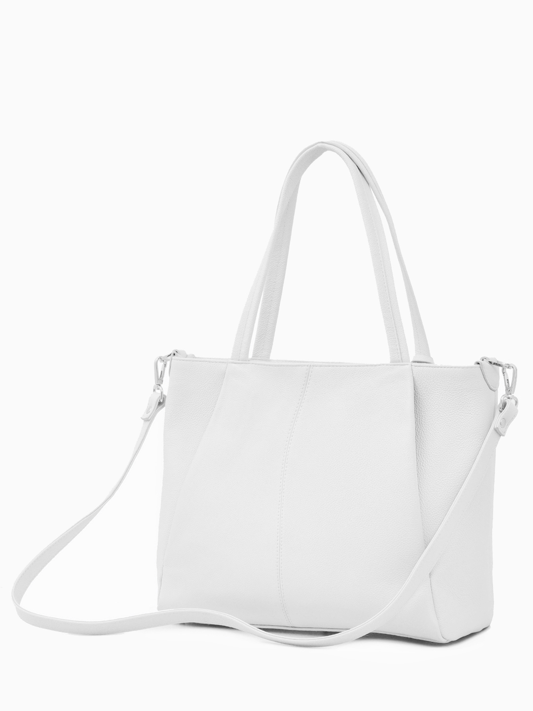 И ещё: сумка закрывается на молнию, носится на плече или на сгибе руки.. Вмещает в себя документы в формате А4. Дополнительно прилагается длинный кожаный ремешок на карабинах на или через плечо - 101 см (не регулируется). На дне сумочки имеются металлические ножки. Фурнитура - серебристый металл.