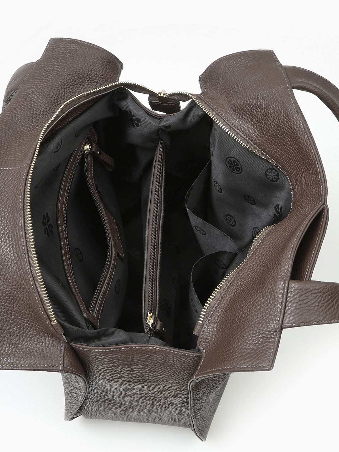 Внутри: два отдела, разделённые карманом на молнии. На задней стенке крайнего заднего отдела расположен карман для документов на молнии, на противоположной стороне другого отдела - два кармашка для мобильного и мелких предметов.