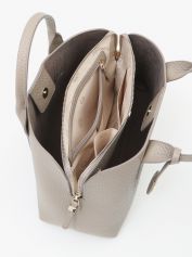 Внутри: три независимых отдела. Центральный основной отдел закрывается на молнию, дополнительные боковые - на магнитные кнопки. На задней стенке центрального отдела расположен карман для документов на молнии, на противоположной стороне -  два кармашка  для мобильного и  мелких предметов.