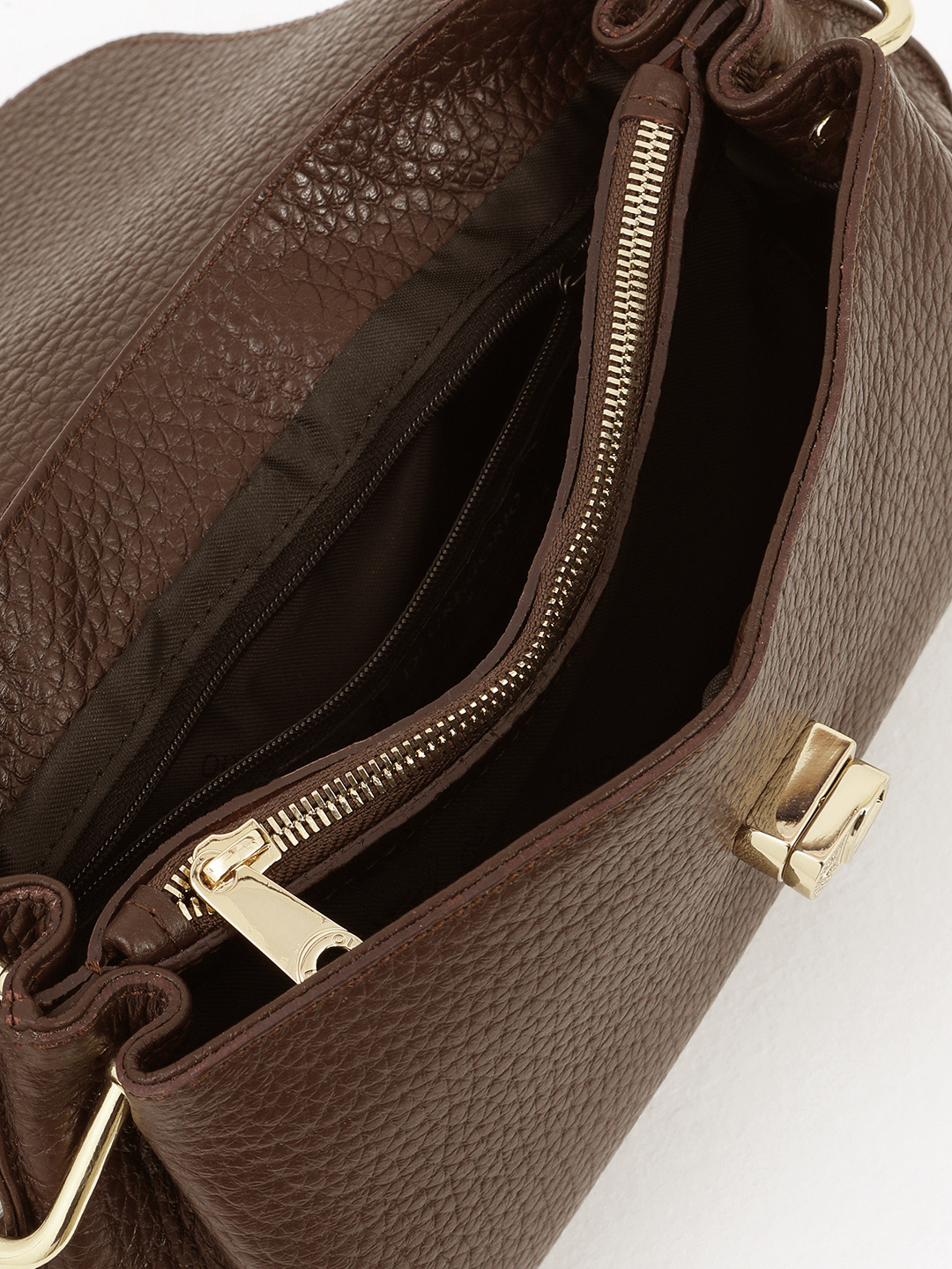 И ещё: сумочка кросс-боди закрывается клапаном на фурнитуру, надевается на или через плечо. Длинный регулируемый кожаный ремешок на карабинах на плечо. Фурнитура - золотистый металл.
