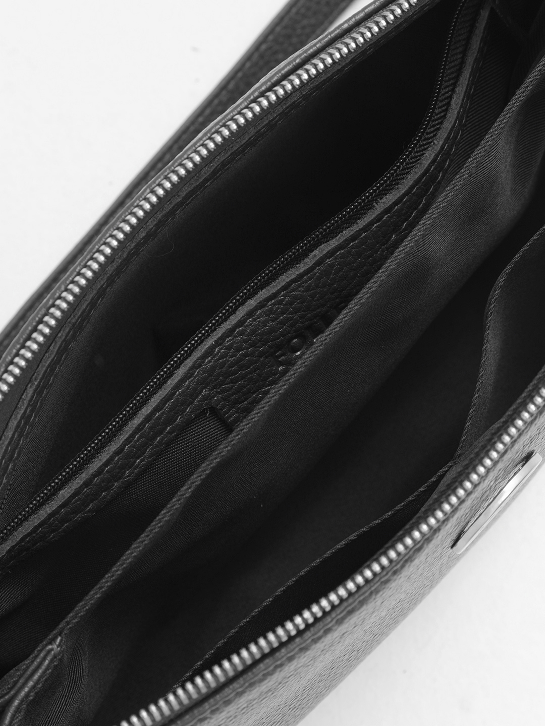 Внутри: два отдела. На задней стенке крайнего заднего отдела расположен карман для документов на молнии, на противоположной стороне другого крайнего отдела - два кармашка для мобильного и мелких предметов.